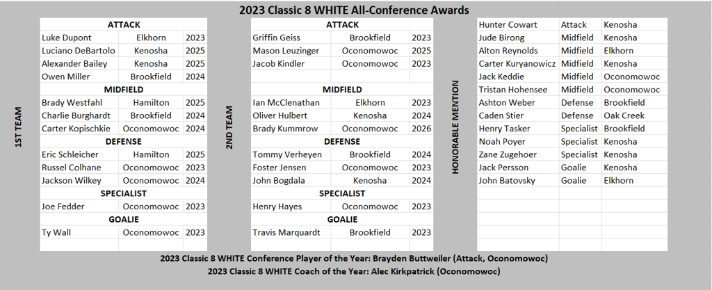 Classic 8 White Conference Games Only