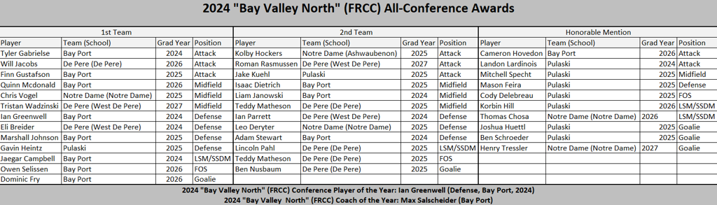 Bay Port ● De Pere ● Notre Dame ● Pulaski